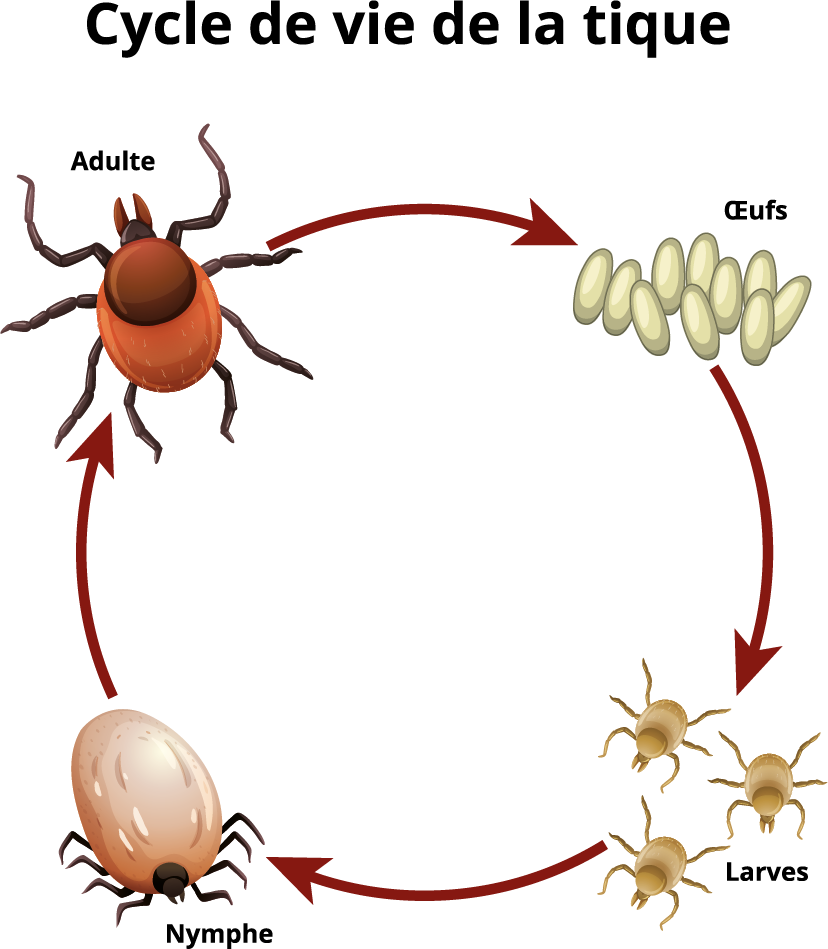Comprendre ce cycle de vie est essentiel pour mettre en place des mesures de prévention et de contrôle efficaces afin de réduire les risques de piqûres de tiques et de transmission de maladies associées.